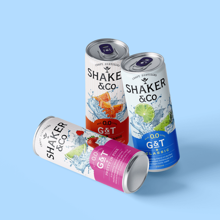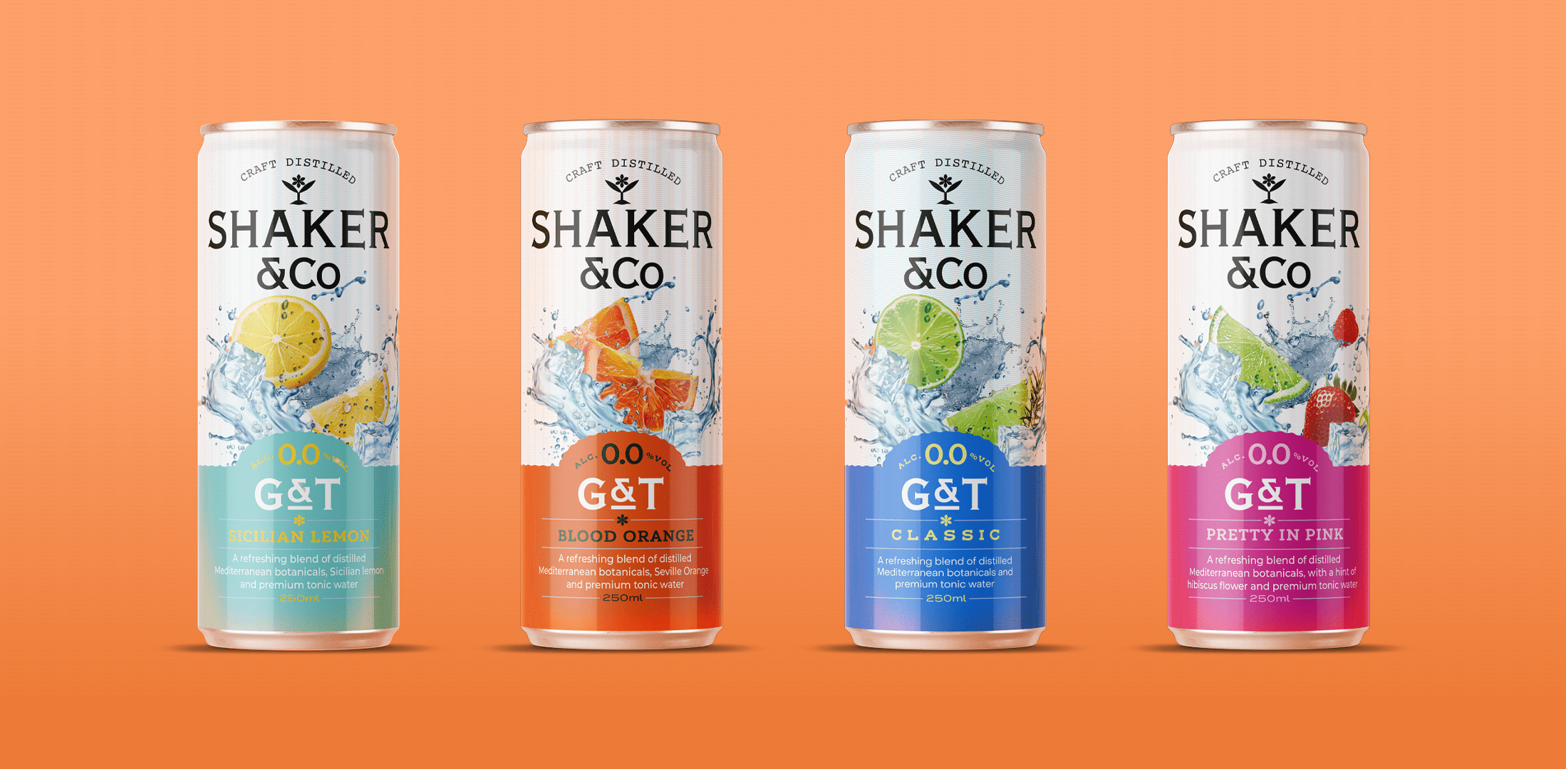 A scalable design system was created for Shaker & Co.’s 250ml slim cans, with cohesive yet distinctive flavour variants, clear and consistent on-pack flavour messaging, and print-ready artwork for production and rollout.